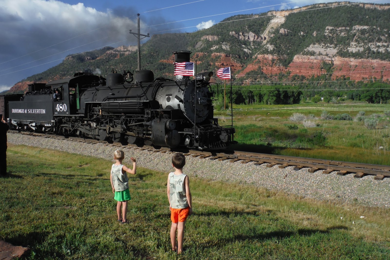 Our accommodation at the Iron Horse Inn was only a couple of miles out of Durango. We've got amazing views of the mountains.The Durango to Silverton Narrow Gauge RailRoad runs straight past our door. Here we are waiting for the 5:15 train to come past.